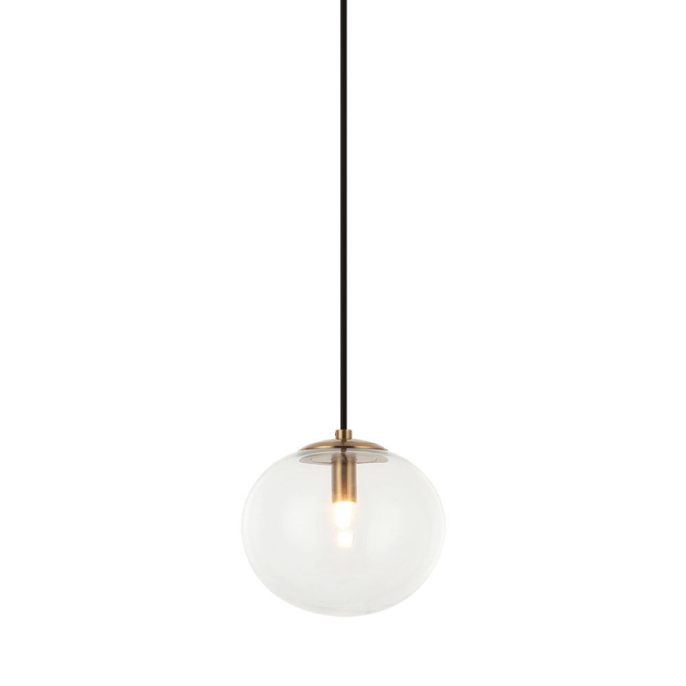 1 LT 6.9" DIAM "BULBUS" AGED GOLD/CEILING CLEAR GLASS PENDANT LED G9 LED 10W