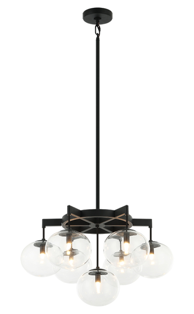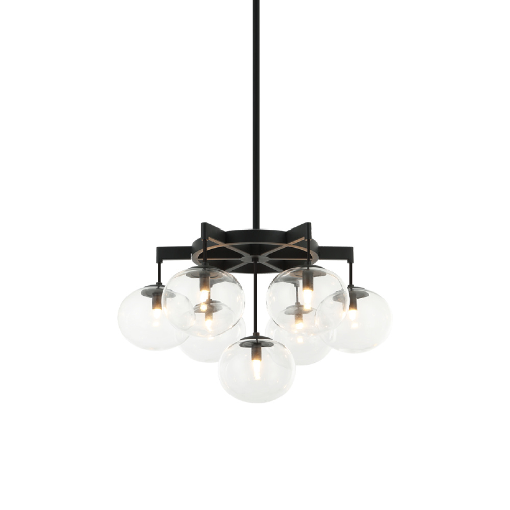 7 LT 24" DIAM "BULBUS" MATTE BLACK/CEILING CLEAR GLASS CHANDELIER LED G9 LED 10W