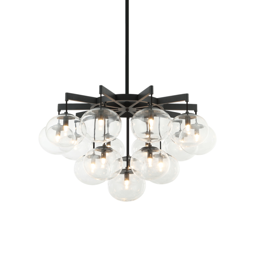 16 LT 32" DIAM "BULBUS" MATTE BLACK/CEILING CLEAR GLASS CHANDELIER LED G9 LED 10W