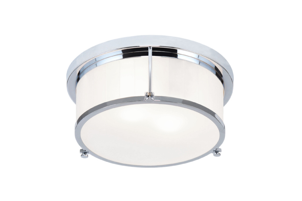 Caisse Claire is a simplistic flush mount series, inspired by the element of a drum. With structured lines and a frosted wide ribbed glass shade, this series of fixtures will add a timeless statement to any interior. Available in two sizes and two finishes, Matte Black or Chrome.