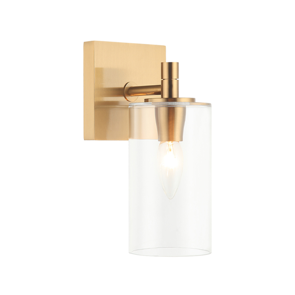 The Candela series is a transitional style vanity pillar shaped glass. Three finishes, Aged Gold Brass, Chrome, Matte Black in either Clear or Opal glass shade.