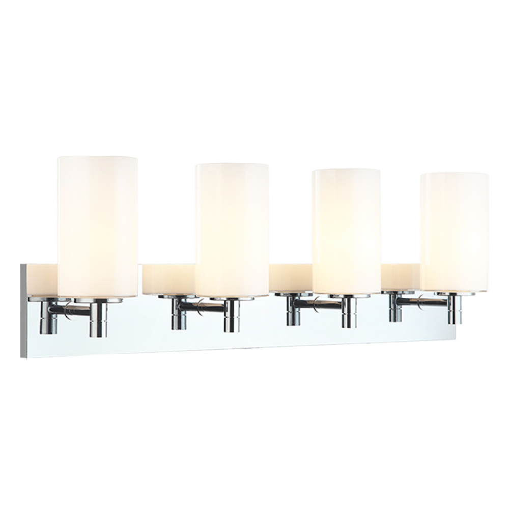 The Candela series is a transitional style vanity pillar shaped glass. Three finishes, Aged Gold Brass, Chrome, Matte Black in either Clear or Opal glass shade.