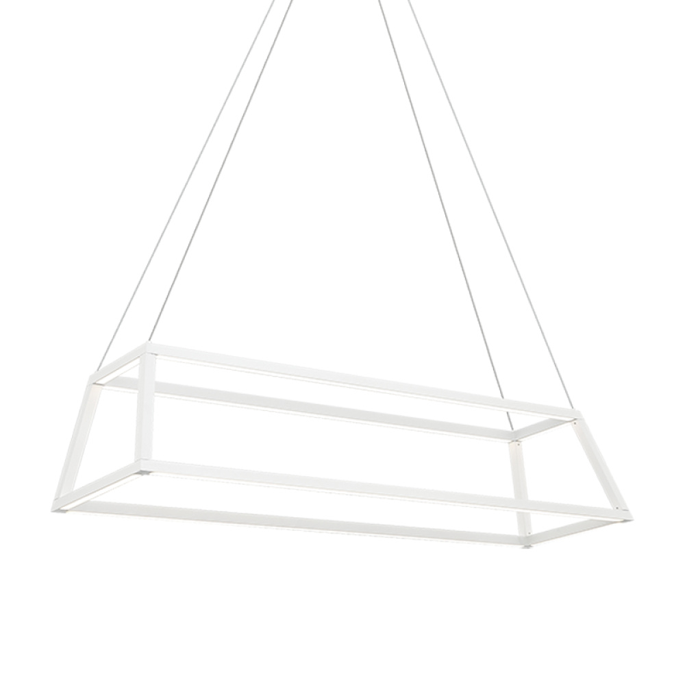 Carlington is simplicity at it’s best. The LED is powered by a driver in the canopy and lights the underside of the metal frame. It is suspended with silver cord and offers a direct uncomplicated vibe.