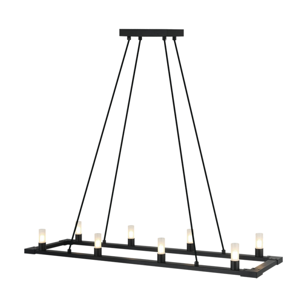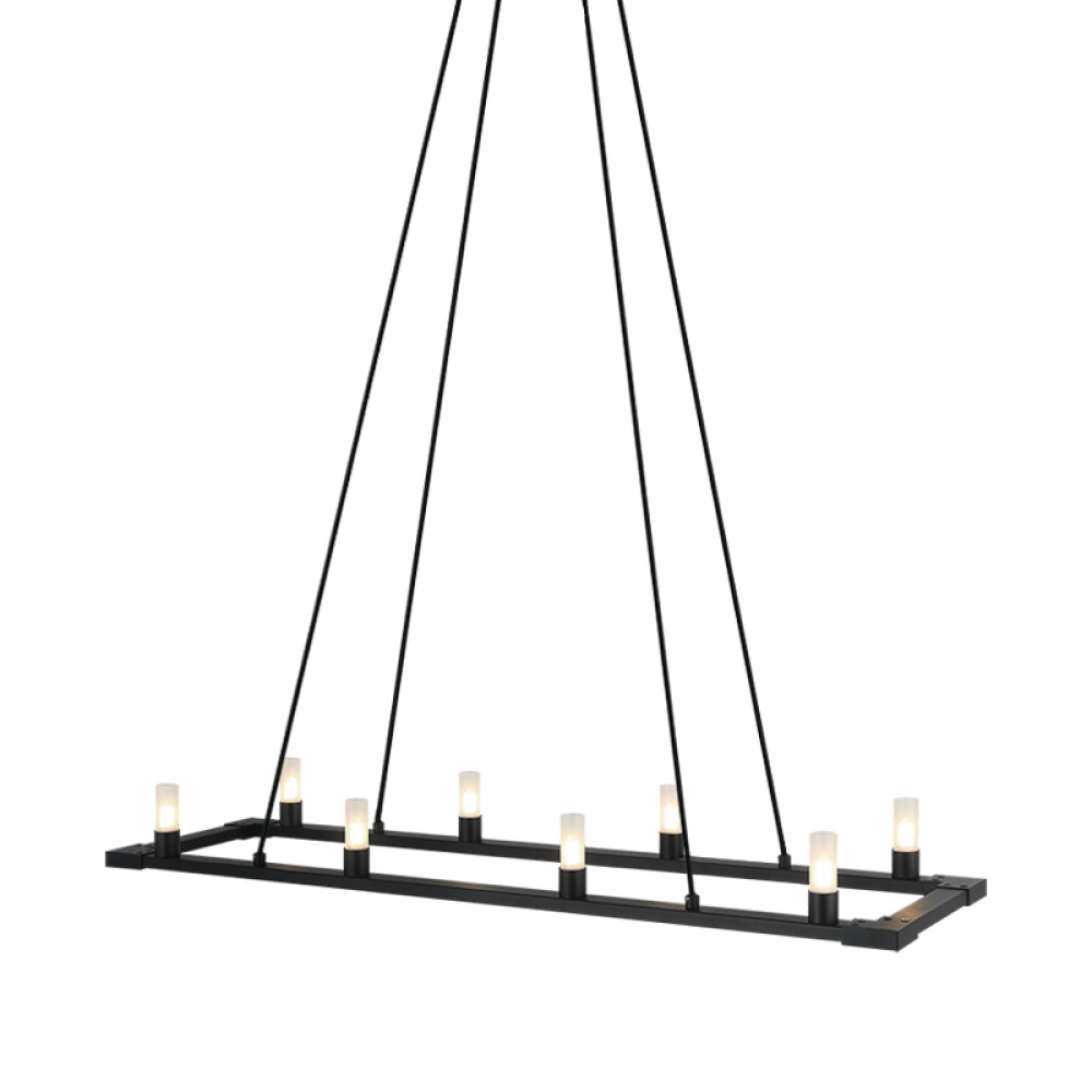 Need a statement piece – The Cascadian series will certainly deliver! Round and rectangular frames are both available and neither style will disappoint. Small glass shades line the Aged Gold Brass or Matte Black frame and are suspended by black fabric cords. Single layer and 2 two tier fixtures equally pack the WOW factor.
