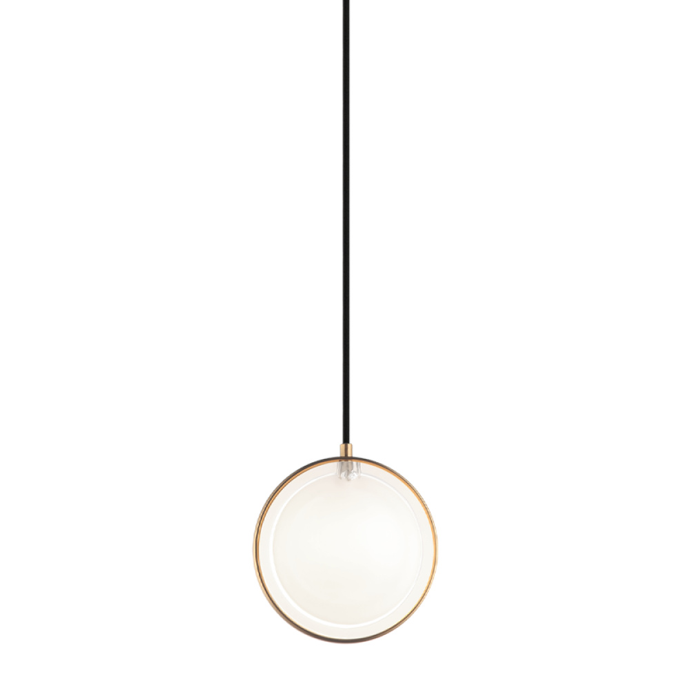 ChatoyantA minimalistic round-flat style with 2-layer shade – Opal shade on the inside surrounded by a Clear glass shade. LIGHTBULBS NOT INCLUDED