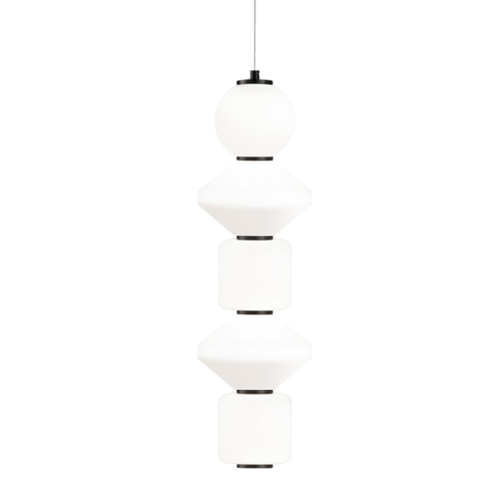 A unique series of pendants. Dango is comprised of opal glass in the form of geometric shapes complemented by Oxidized Gold or Oxidized Black detailing. 2 styles will be available - all the same glass or a mixed glass version. Additional glass can be purchased separately to create a unique personalized fixture. Available in 4 sizes.