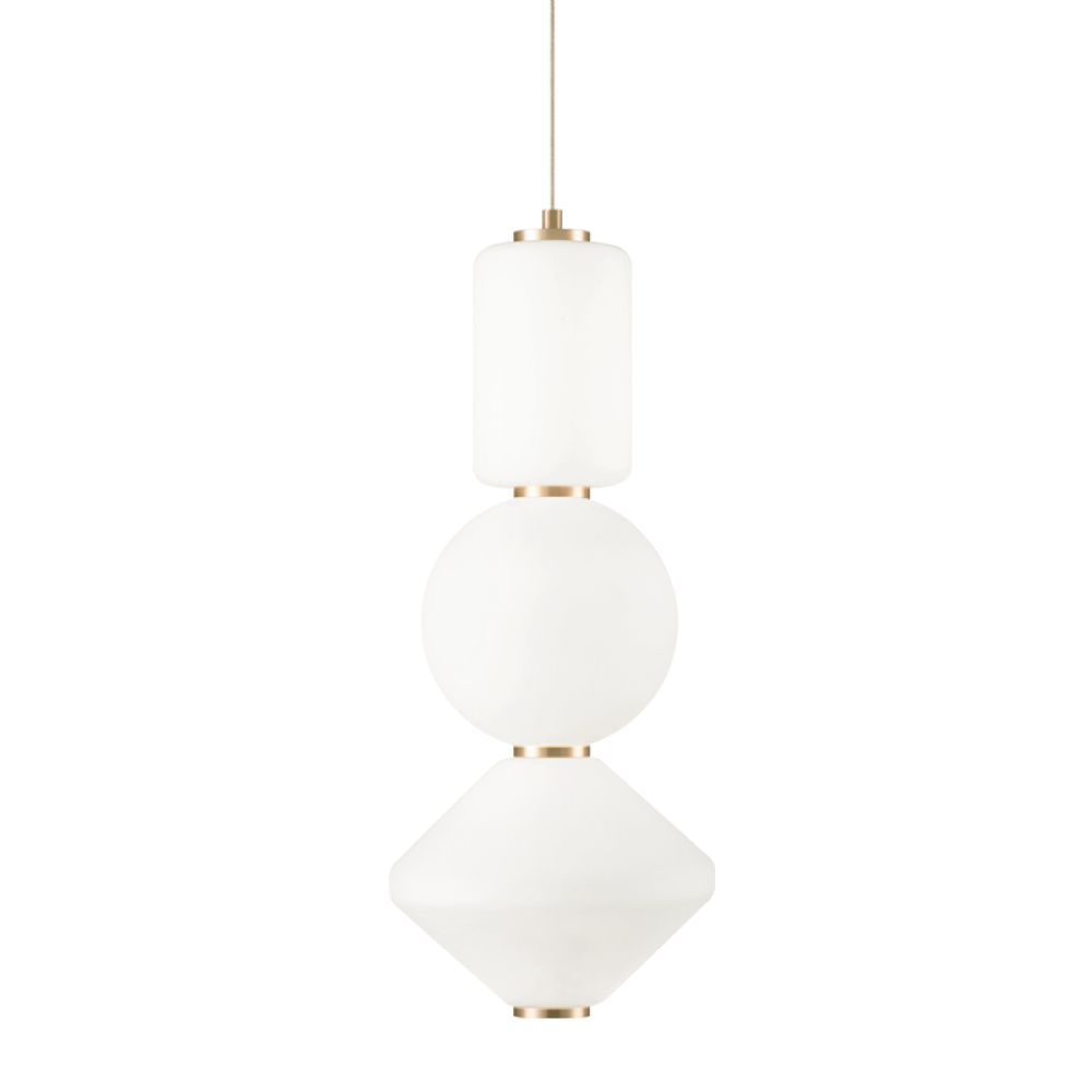 A unique series of pendants, Dango is comprised of opal glass in the form of geometric shapes complemented by Oxidized Rose or Oxidized Black detailing. 2 styles will be available - all the same glass or a mixed glass version. Additional glass can be purchased separately to create a unique personalized fixture. Available in 4 sizes