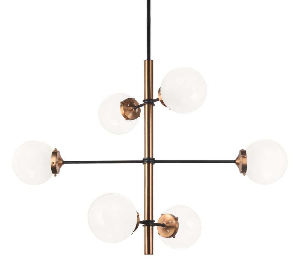 Inspired by the Mid-Century style, Enchant comes with a sleek and modular rod design. The polished series comes in 2 sizes and 2 finishes: Aged Gold Brass and Chrome rods highlighted by black. Available in either Clear or Opal glass.LIGHTBULBS NOT INCLUDED