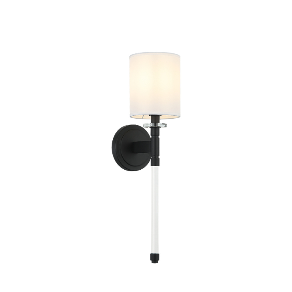 1 LT 5"W "FAIRBURN" MATTE BLACK WALL SCONCE / FABRIC SHADE E12 10W LED