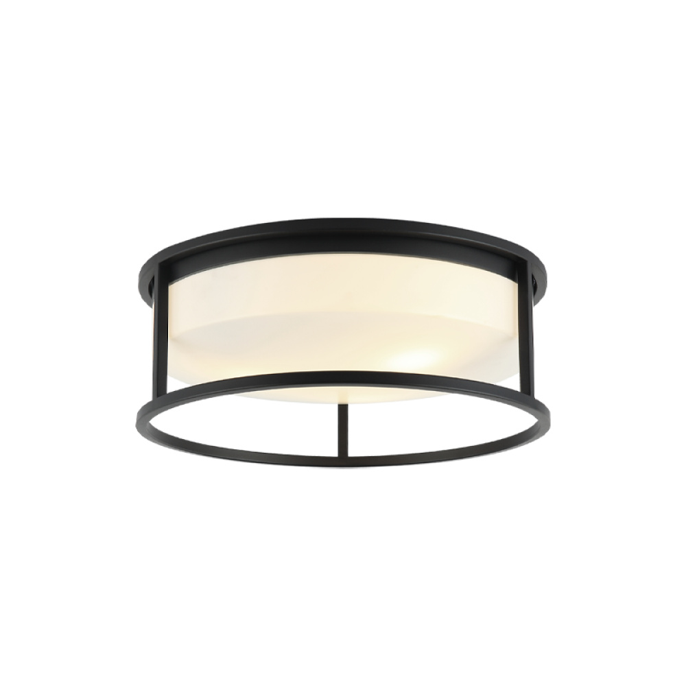 The Framerton is a classic white acrylic shade surrounded by a metal frame in 3 finish choices: Aged Gold Brass, Chrome or Matte Black. Available in a 2 light or 3 light option. This trending larger profile ceiling mount will be striking in any application.