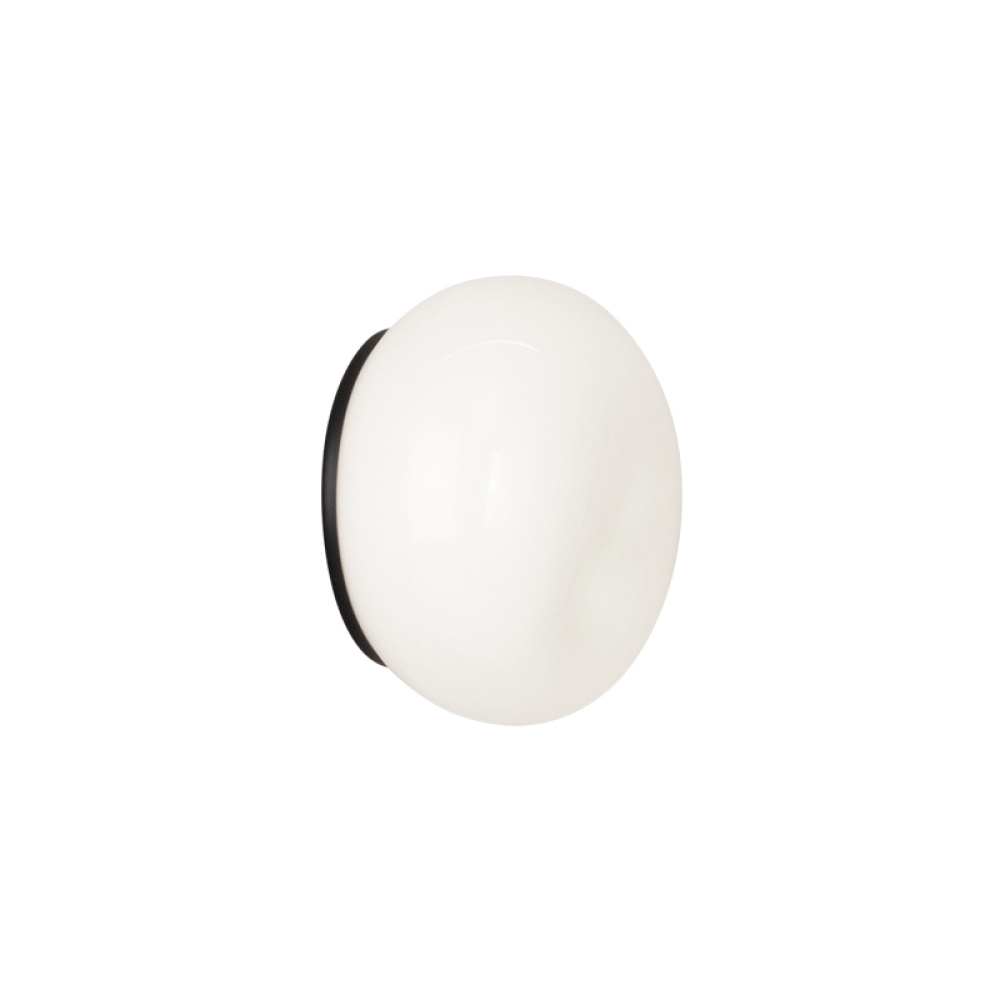 A contemporary flush mount and vanity series. Gelasin features a thin canopy attached to a hand blown Opal glass with a unique dent which adds to the aesthetics. Available in 2 sizes and 2 finishes