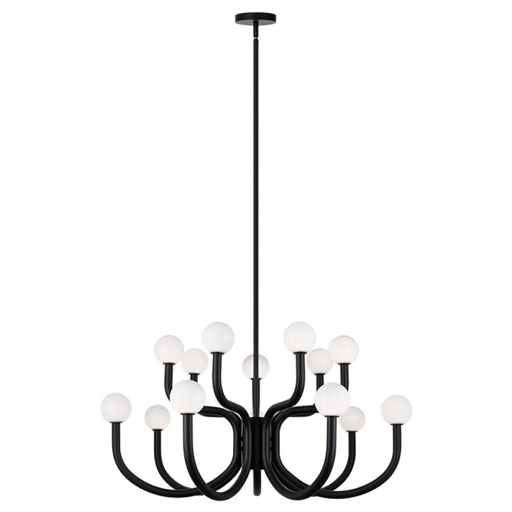 With flowing arms featuring round Opal glass, the Joelle incorporates a mix of style and elegance that could enhance the visual impact. Finishes include chandeliers and wall sconces in Aged Gold Brass and Matte Black.