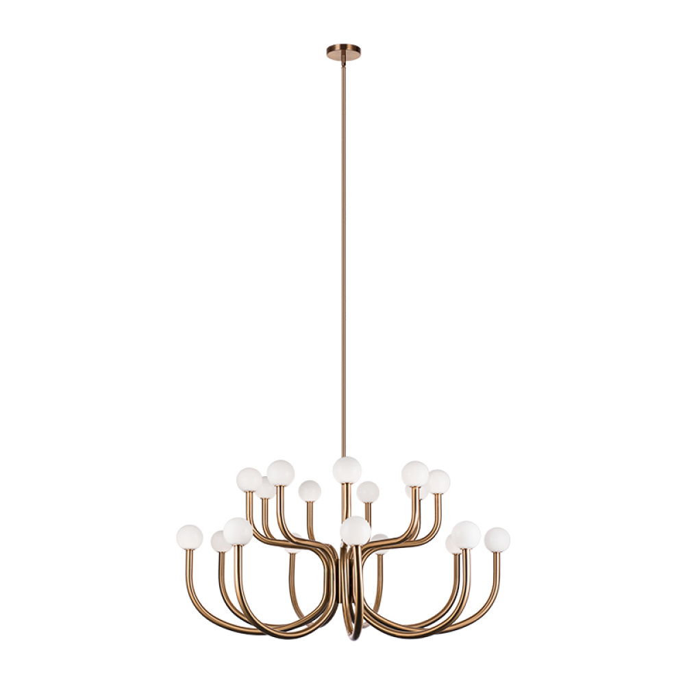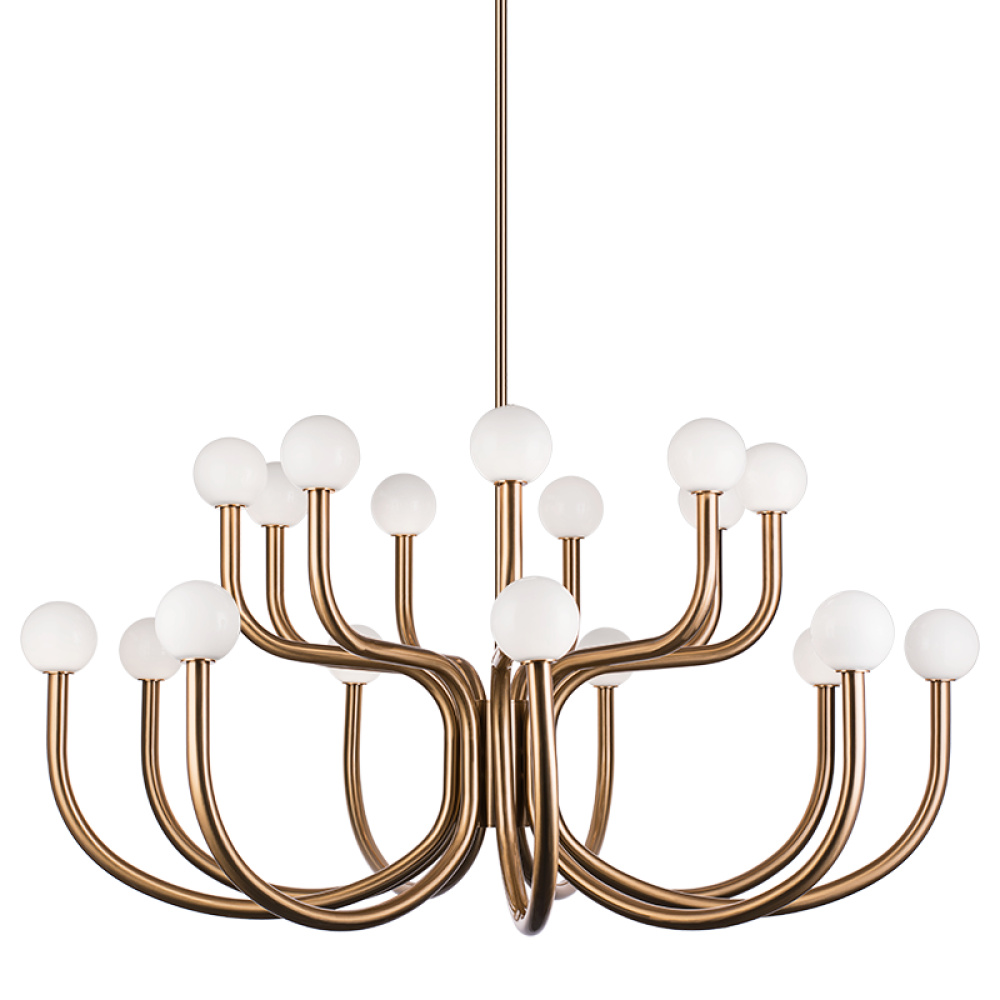 With flowing arms featuring round Opal glass, the Joelle incorporates a mix of style and elegance that could enhance the visual impact. Finishes include chandeliers and wall sconces in Aged Gold Brass and Matte Black.