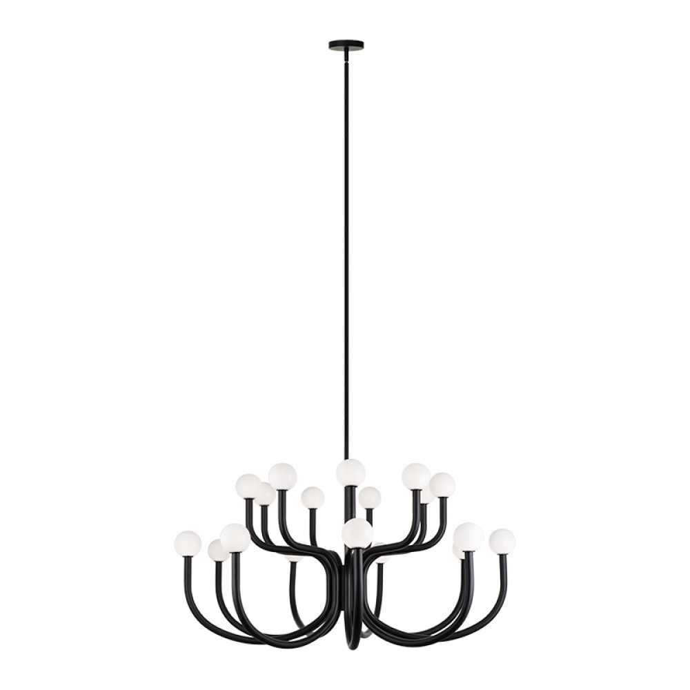 With flowing arms featuring round Opal glass, the Joelle incorporates a mix of style and elegance that could enhance the visual impact. Finishes include chandeliers and wall sconces in Aged Gold Brass and Matte Black.