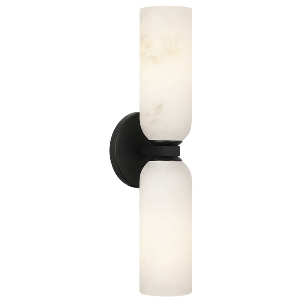 Jules Elevate your space with this transitional wall sconce, defined by its striking vertical silhouette and softly illuminated alabaster shades. Matte Black and Champagne Gold backplates provide bold contrast, while the natural veining of the alabaster casts a warm, inviting glow. Ideal for hallways, bathrooms, and modern living areas, this fixture offers both sculptural presence and beautifully balanced ambient lighting. *Due to the natural characteristics of alabaster, colour and pattern variations may occur. LIGHTBULBS NOT INCLUDED