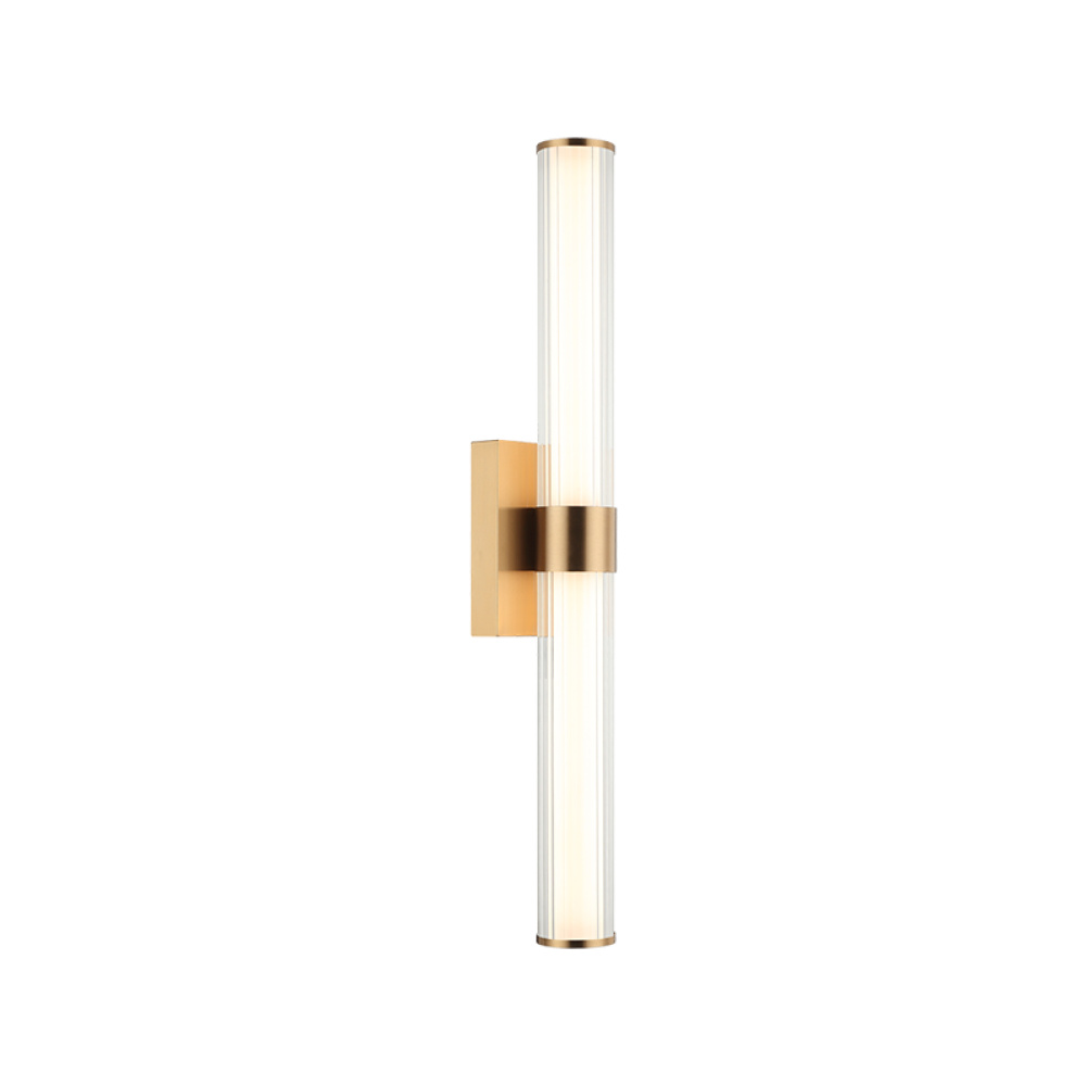 Macie The Macie wall sconce is an integrated LED covered with a white tube and then finished with ribbed glass resulting in a clean sophisticated style. The contrast between the smooth white tube and the textured ribbed glass creates a tasteful elegant energy.