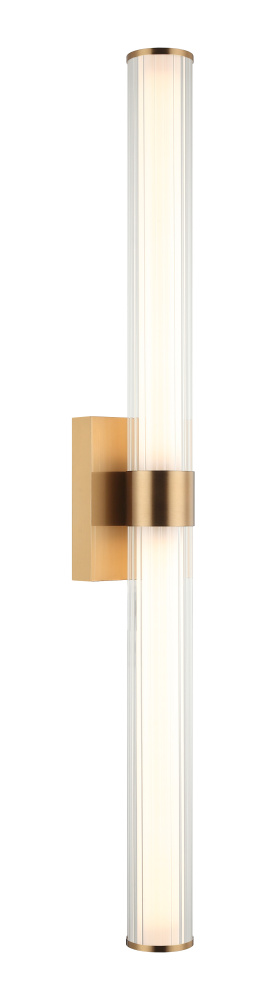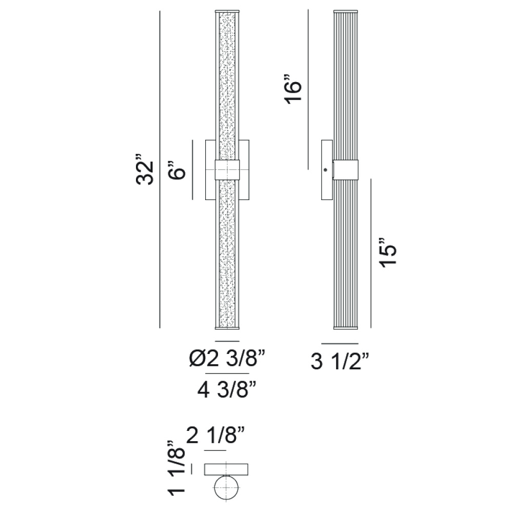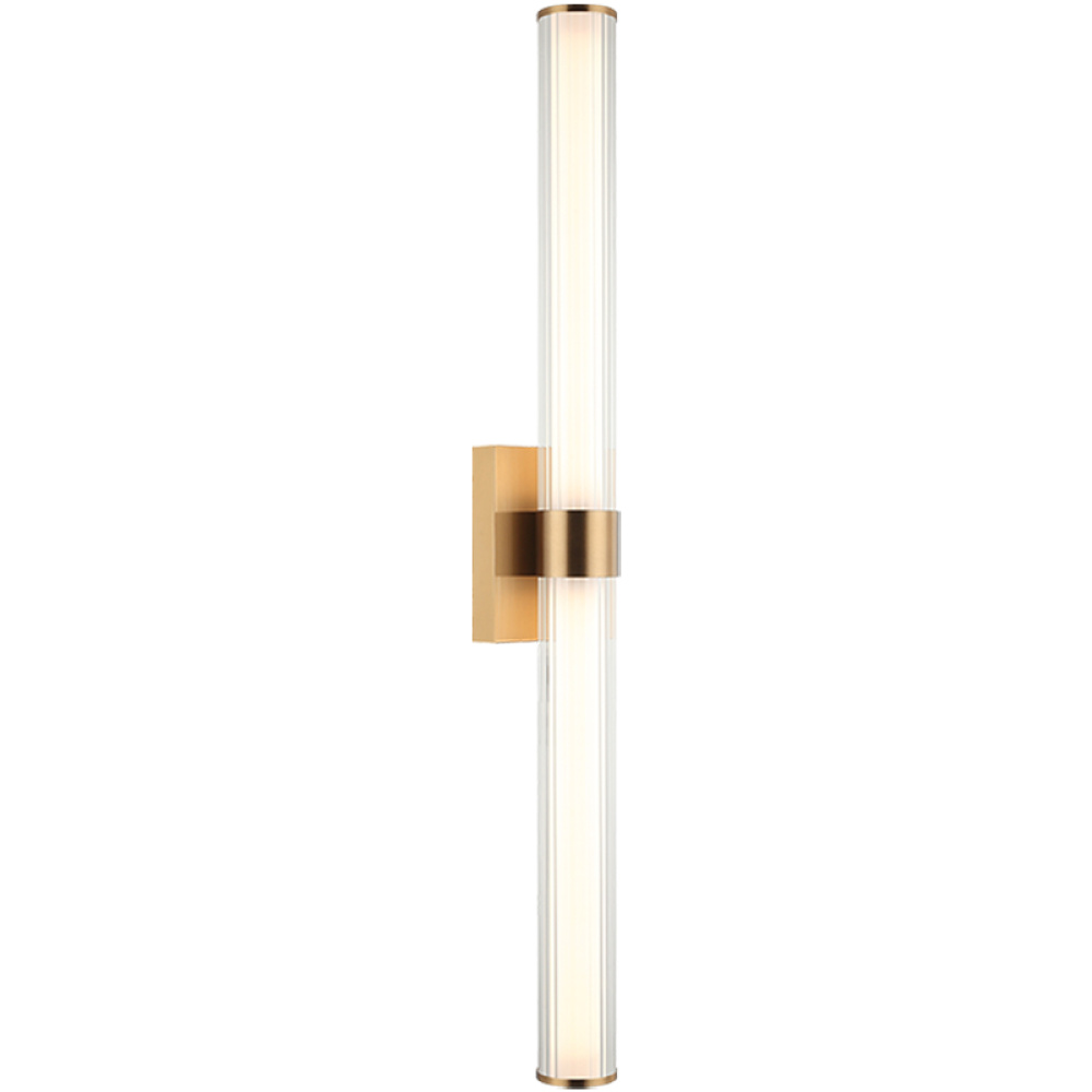 Macie The Macie wall sconce is an integrated LED covered with a white tube and then finished with ribbed glass resulting in a clean sophisticated style. The contrast between the smooth white tube and the textured ribbed glass creates a tasteful elegant energy.