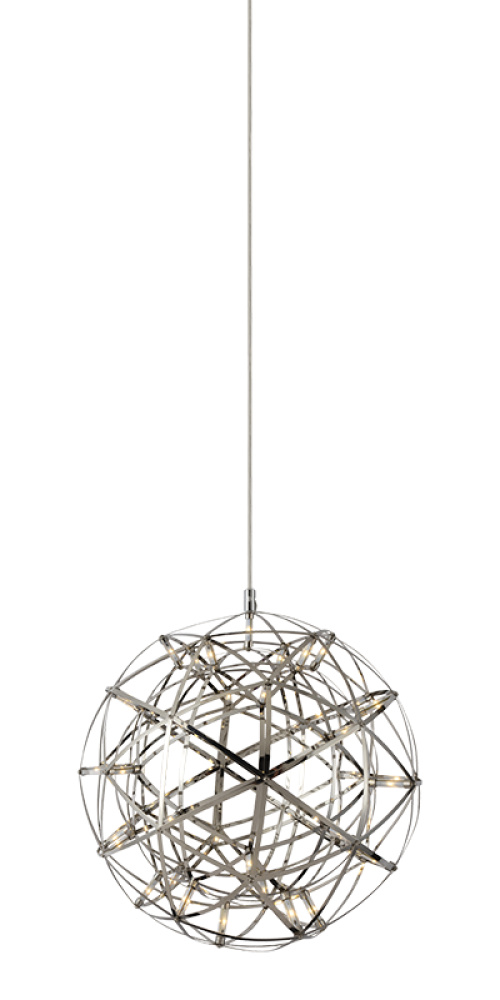 Inspired by the city lights at night, Manhattan is made of precision-cut metal strips in a form of a globe. An exploration of simplicity and geometric form that will illuminate your ideal space. Available in 3 sizes with a clear cord.