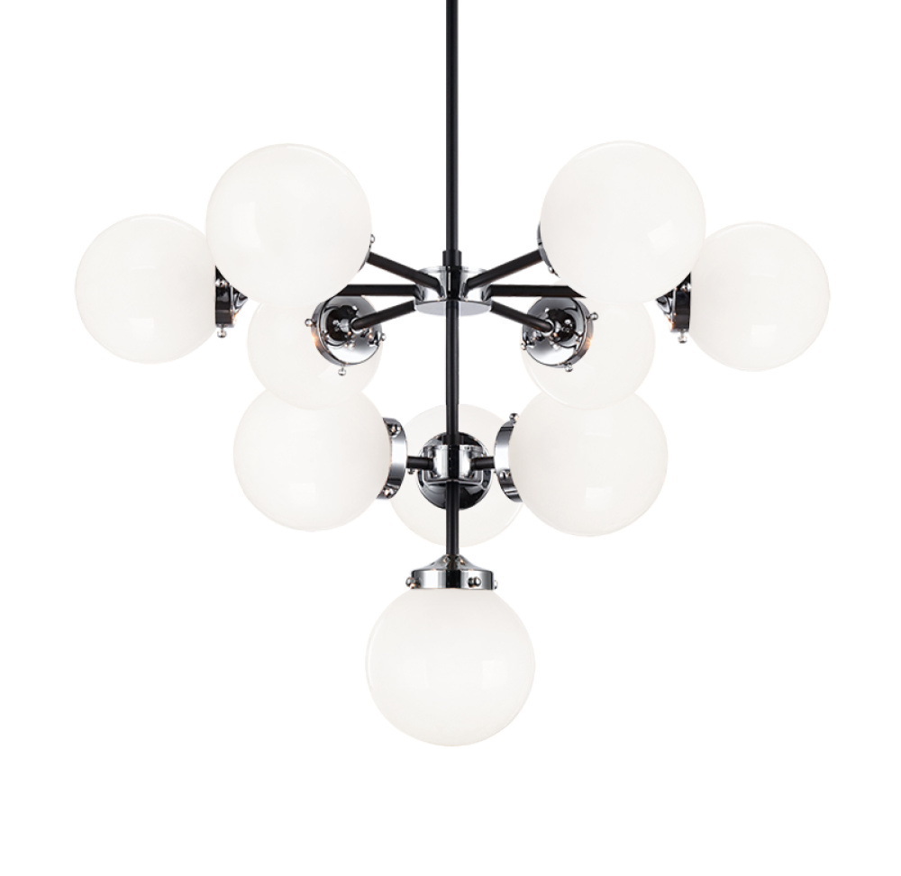 A Mid-Century style that will work with many décors. The series comes in two finishes, Aged Gold Brass and Chrome with Matte Black accents. The finished look can be completely different whether you choose opal or clear glass. The fixtures include a 2-inch rod that you can convert to semi-flush pieces instead of a chandelier. This series can brighten any room with its timeless style and versatile design.