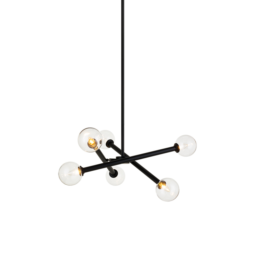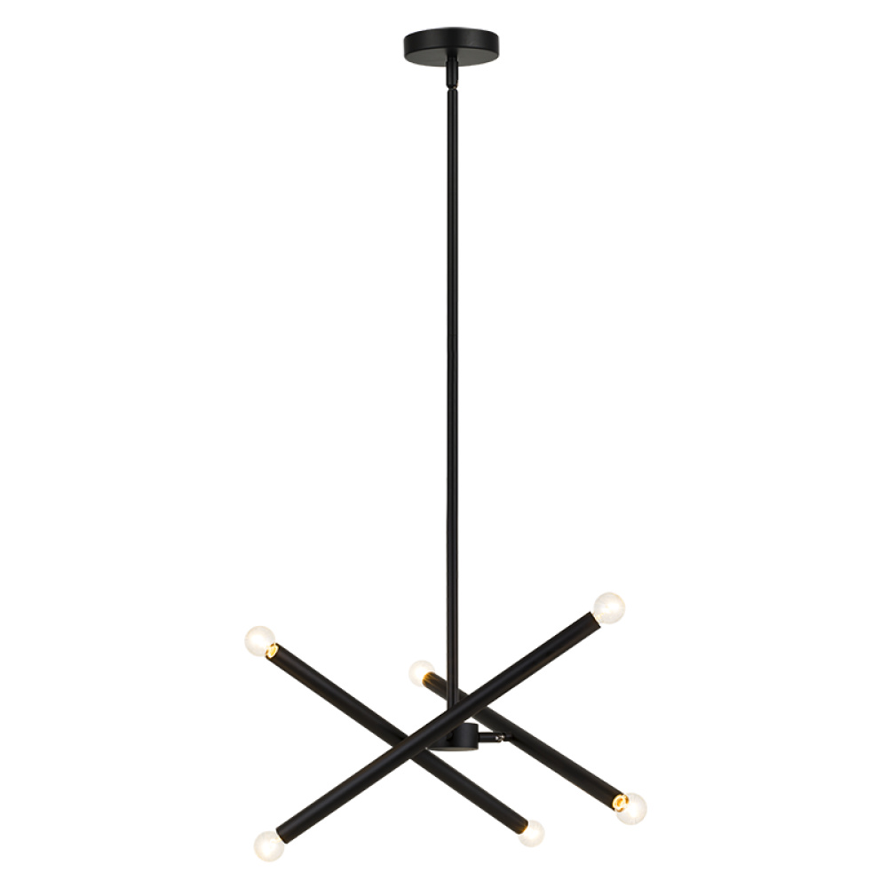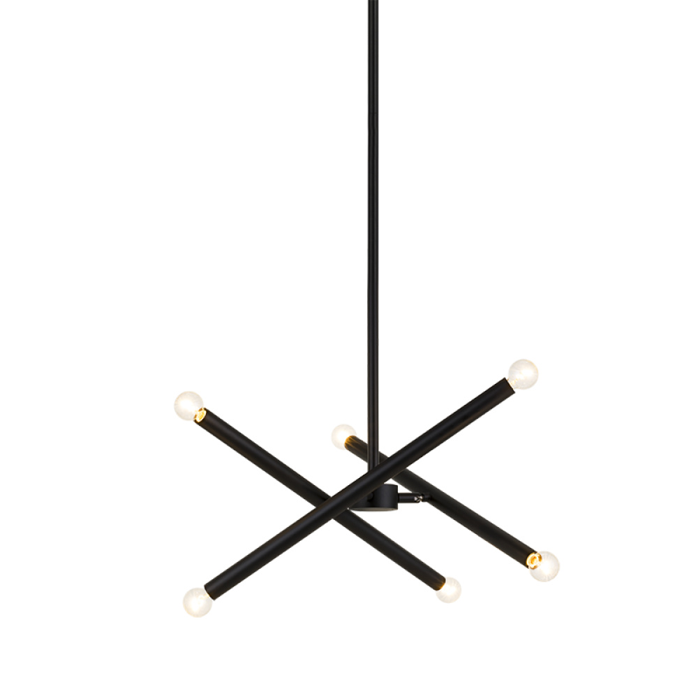 Matchstix chandelier will be a dramatic addition to any room. Modern movement in the crossing bar design will be a signature piece. Available in Aged Gold Brass or Black with either Clear or Opal glass.
