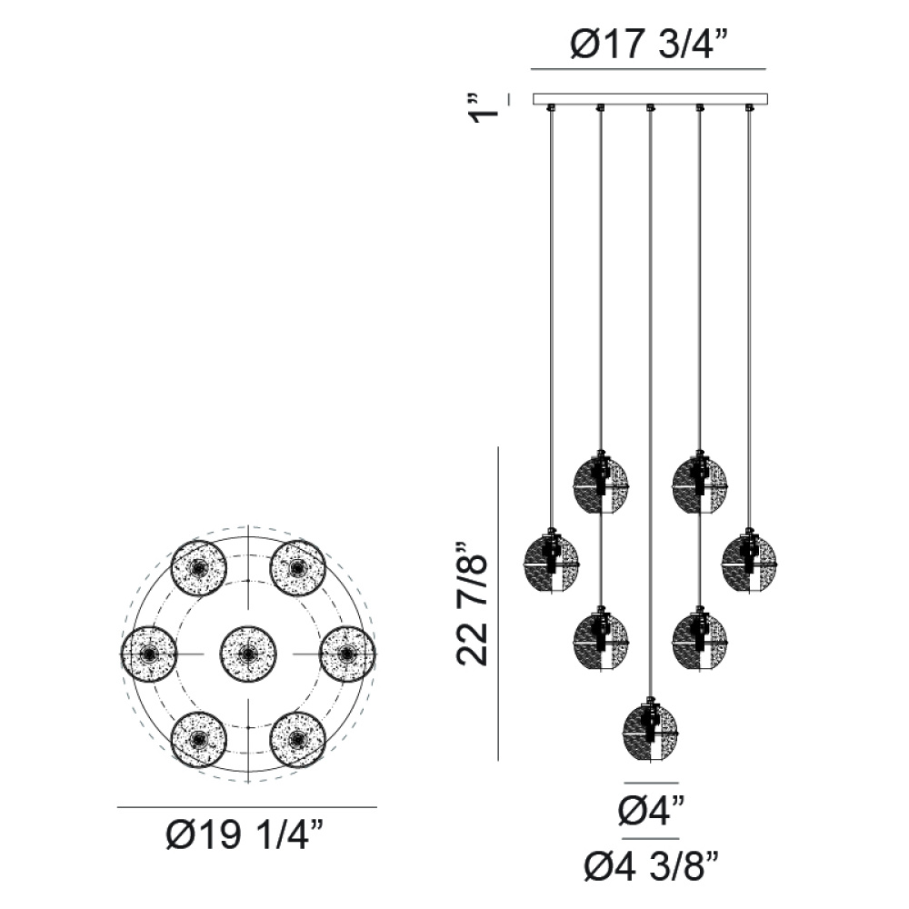 7 LT DIA19.2" "MISTY" MATTE BLACK G9 5W CHANDELIER