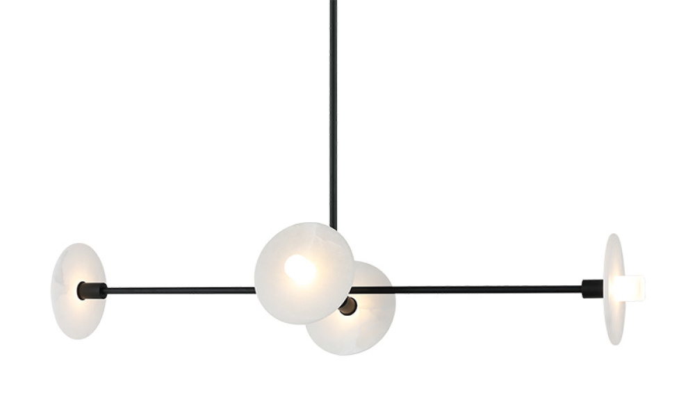 Monument A bold fusion of modern geometry and soft illumination, Monument brings transitional artistry to life with its sculptural arrangement of frosted acrylic and alabaster disc shades. Each hand-cast–style diffuser emits a warm, inviting glow that enriches both ambiance and visual depth. Available in Champagne Gold and Matte Black finishes. LIGHTBULBS NOT INCLUDED