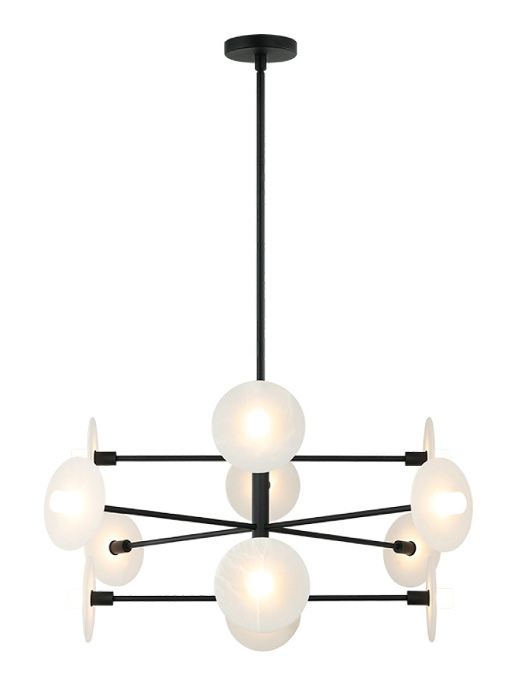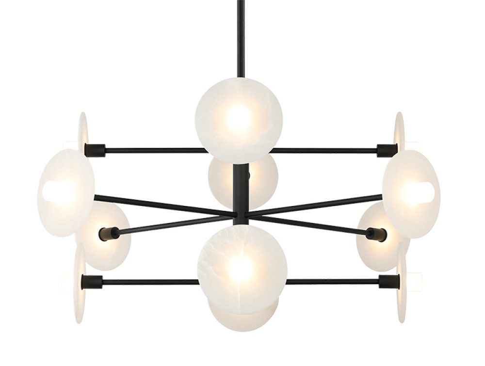 Monument A bold fusion of modern geometry and soft illumination, Monument brings transitional artistry to life with its sculptural arrangement of frosted acrylic and alabaster disc shades. Each hand-cast–style diffuser emits a warm, inviting glow that enriches both ambiance and visual depth. Available in Champagne Gold and Matte Black finishes. LIGHTBULBS NOT INCLUDED