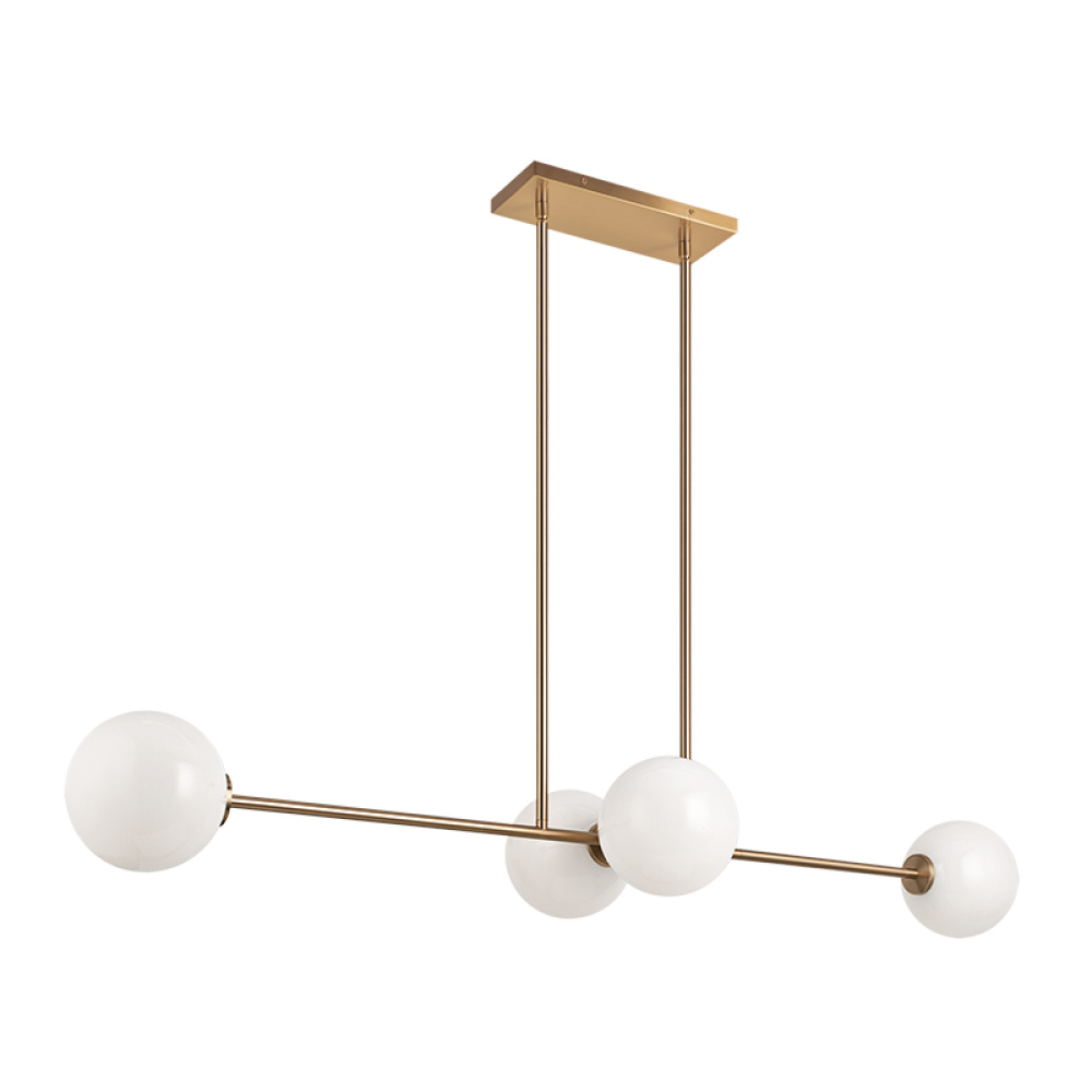 Novo is modern yet classic – available in the form of chandelier, wall sconce, and flush mount. The rods and base are either Aged Gold Brass or Black finish paired with a contrasting Opal Glass. The style is very versatile and will add beauty to multiple rooms.