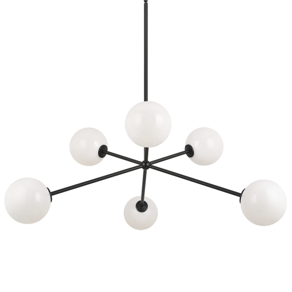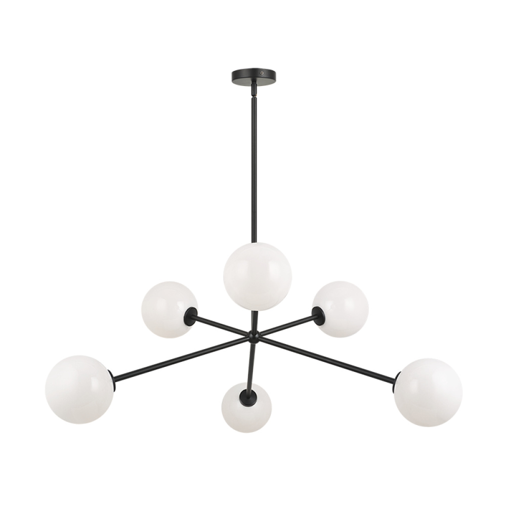 Novo is modern yet classic – available in the form of chandelier, wall sconce, and flush mount. The rods and base are either Aged Gold Brass or Black finish paired with a contrasting Opal Glass. The style is very versatile and will add beauty to multiple rooms.