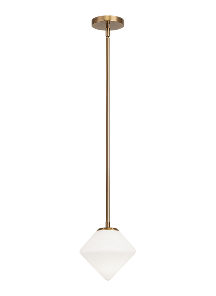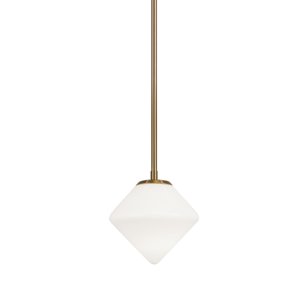 Novo is modern yet classic – available in the form of pendant, chandelier, wall sconce, and flush mount. The rods and base are either Aged Gold Brass or Black finish paired with a contrasting Opal or Clear round glass and diamond shaped glass. The style is very versatile and will add beauty to multiple rooms.