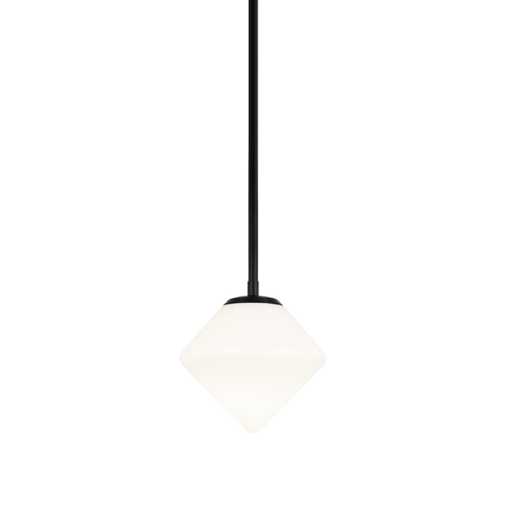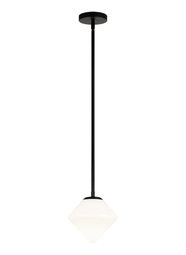 Novo is modern yet classic – available in the form of pendant, chandelier, wall sconce, and flush mount. The rods and base are either Aged Gold Brass or Black finish paired with a contrasting Opal or Clear round glass and diamond shaped glass. The style is very versatile and will add beauty to multiple rooms.