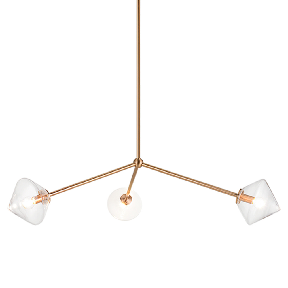 Novo is modern yet classic – available in the form of chandelier, wall sconce, and flush mount. The rods and base are either Aged Gold Brass or Black finish paired with a contrasting Opal or Clear round glass and diamond shaped glass. The style is very versatile and will add beauty to multiple rooms.