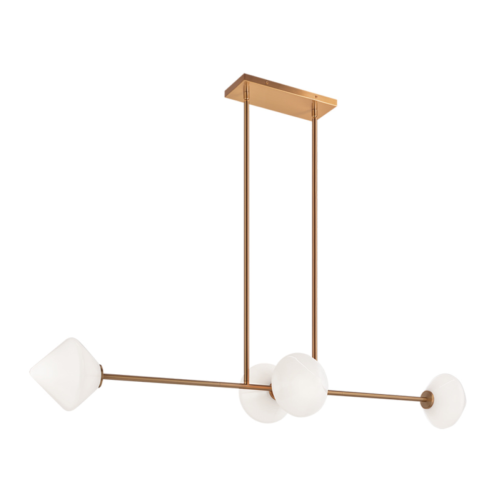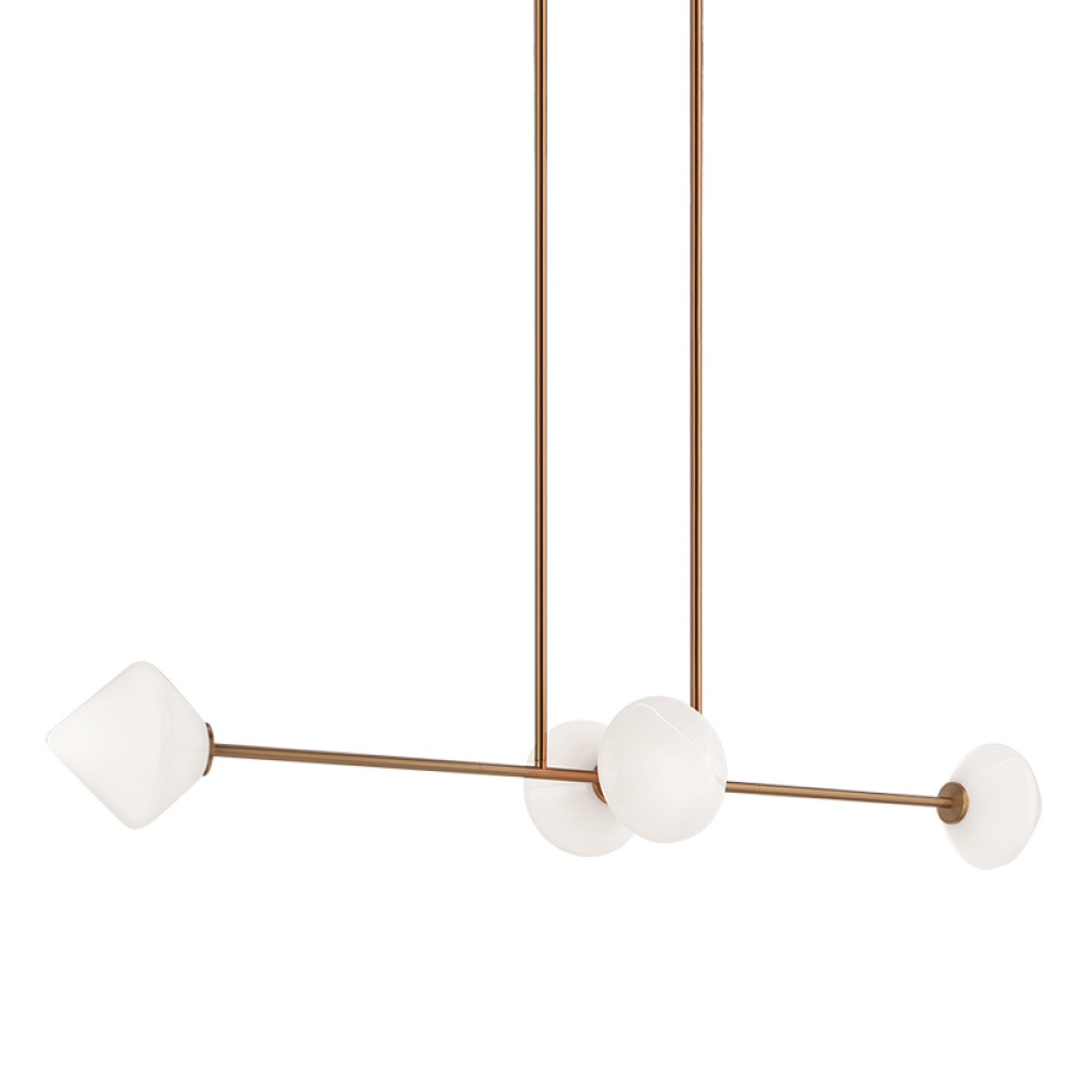 Novo is modern yet classic – available in the form of chandelier, wall sconce, and flush mount. The rods and base are either Aged Gold Brass or Black finish paired with a contrasting Opal or Clear round glass and diamond shaped glass. The style is very versatile and will add beauty to multiple rooms.