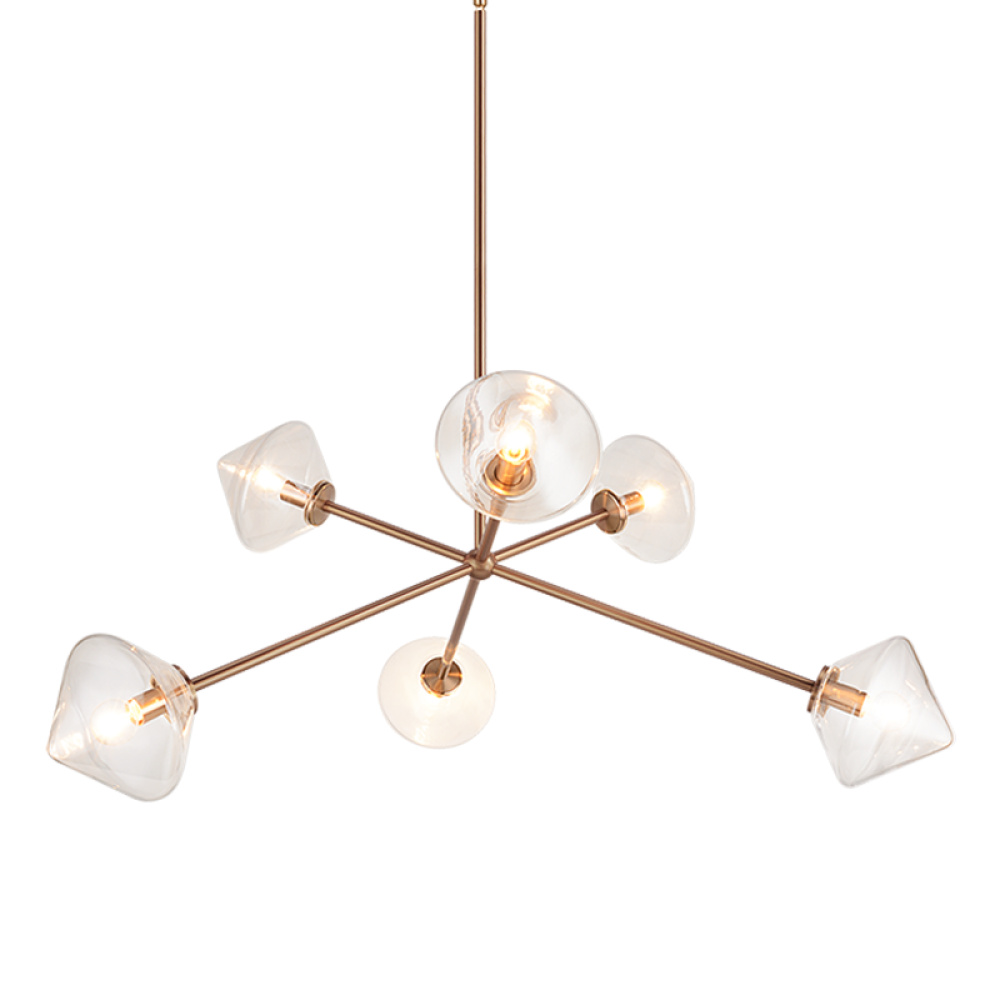 Novo is modern yet classic – available in the form of chandelier, wall sconce, and flush mount. The rods and base are either Aged Gold Brass or Black finish paired with a contrasting Opal or Clear round glass and diamond shaped glass. The style is very versatile and will add beauty to multiple rooms.