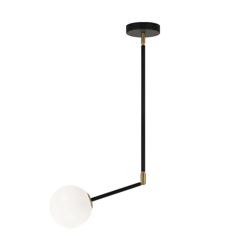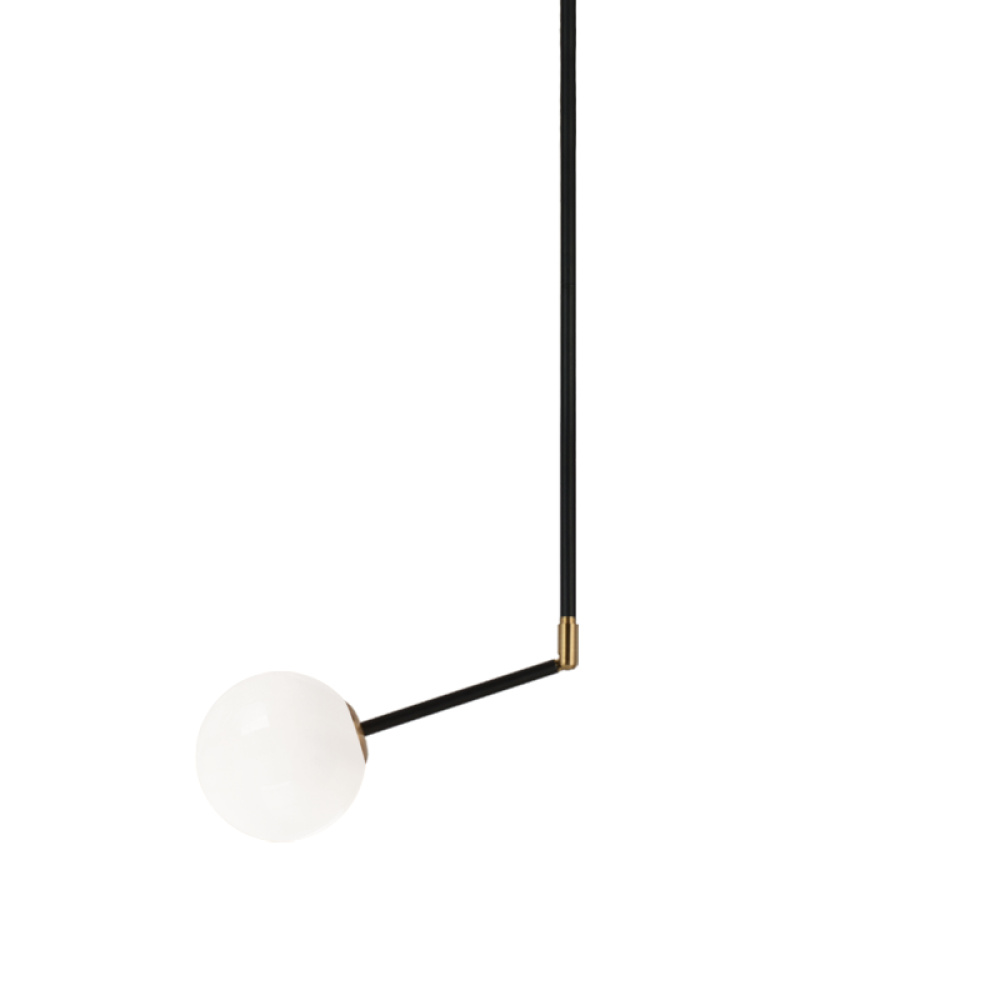 A retro inspired collection that will integrate seamlessly with many decors. Novu comes in Opal glass on sleek black rods offset with Aged Gold Brass accents. Available in a complete family including various sized ceiling fixtures, a wall sconce and a flush mount.