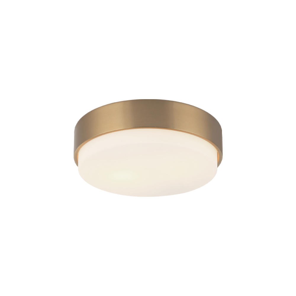 The white glass shade extending beyond the metal frame of the Quintz is a twist on a traditional ceiling mount. It comes in 3 finishes: Aged Gold Brass, Chrome and Matte Black and 2 sizes.