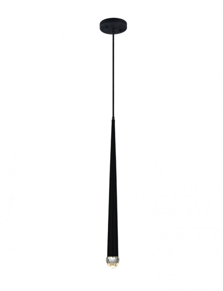 A modern cascading LED pendant offered in a Matte Black Finish and a Chrome finish. This collection has a contemporary feel with added interest in the detailed glass shade. Both finishes have a black fabric cord to complete the style.