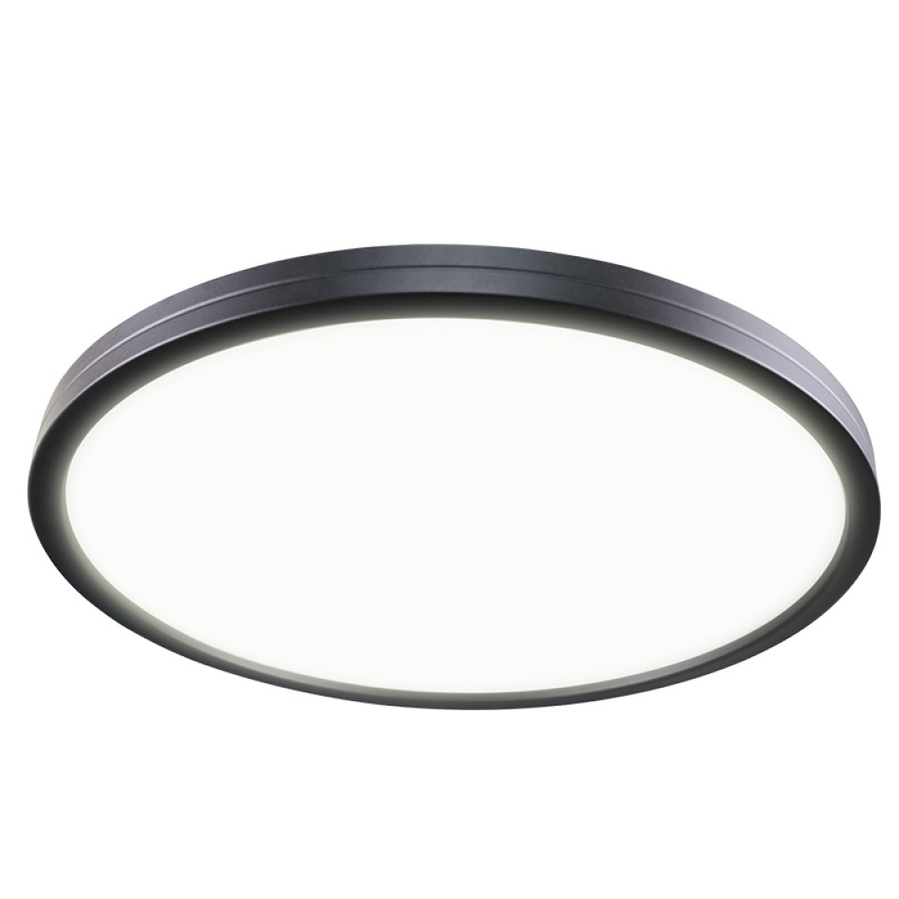 Stratos Brighten any space with modern simplicity. This sleek, low-profile LED ceiling light blends effortlessly into any décor. Its clean round silhouette and brushed metal trim offer a timeless, contemporary look, while the wide frosted diffuser provides smooth, even illumination without harsh shadows. Features a 5CCT switch on the LED module to adjust the 5 selectable colour temperature