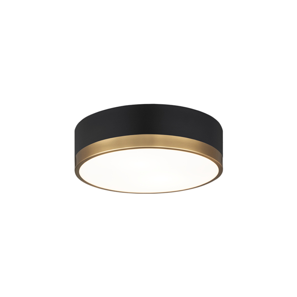 Trydor is an ultra modern take on the traditional flush mount with a higher profile.This two-tone series features a thick Black or White band with a thin contrasting finish of either Chrome or Aged Gold Brass. A versatile fixture, suitable for any room.