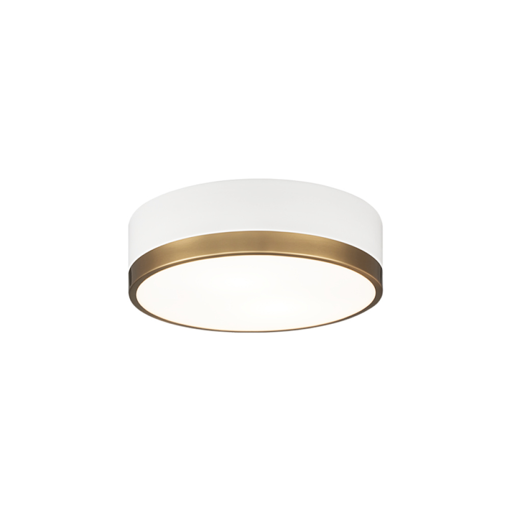 Trydor is an ultra modern take on the traditional flush mount with a higher profile.This two-tone series features a thick Black or White band with a thin contrasting finish of either Chrome or Aged Gold Brass. A versatile fixture, suitable for any room.