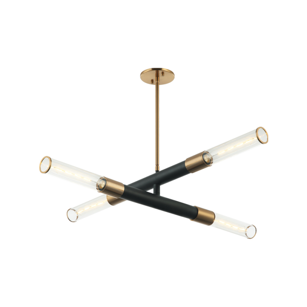 A creative and decorative tubular style lighting design. The Tubo series is available in the form of pendant and wall sconce.The 2-tier pendant is rotatable. It includes an elegant thin canopy with 2 finish combinations paired with a Clear glass shade. The overall look is stylish and timeless, a perfect fit for any room.