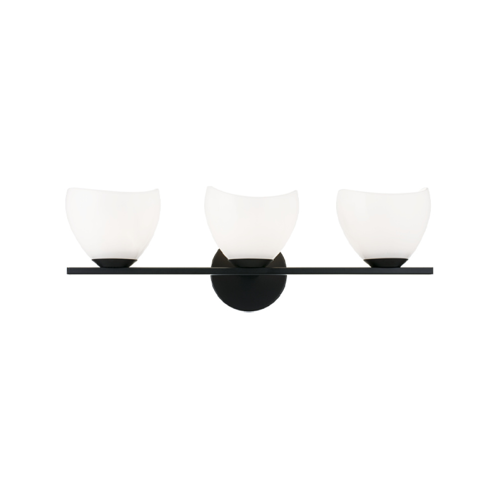Uptowne is a dazzling family with distinctive curved opal glass. Available in Aged Gold Brass or Black.