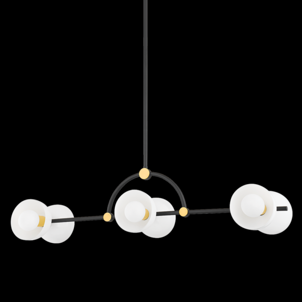 Cool contrast and fine form play well together in Belle's striking silhouette. The aged brass frame pops against the glossy white shades, featuring exposed bulbs for a futuristic effect. This 3-light bath sconce can be installed vertically or horizontally.