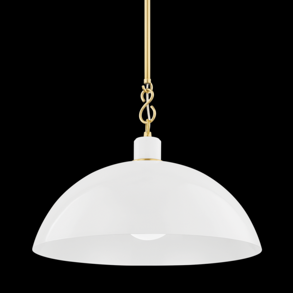 The Camille wall sconce and pendant draws her best features from French design. Aged brass details pop against the glossy black or white dome outfitted with a white interior. From an industrial form to Mid-century styling, Camille may be vintage inspired but was certainly made for modern homes.