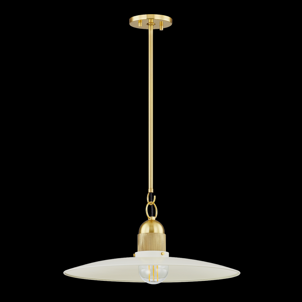 A beautifully modern take on the farmhouse pendant, Leanna features a very slim reflector shade in Soft Cream or Soft Black. Deliberate space between the shade and socket cup allows light to shine on the Aged Brass knurled detailing above as well as reflect off the shade itself. The sconce brings a modern mood to any wall and the pendant, with its delicate hook and loop suspension, is stunning styled in multiples over the kitchen island.