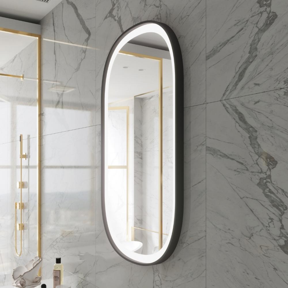 Chic Black Framed Oval Mirror (Frontlit)