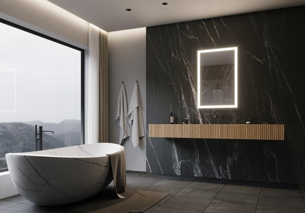 Chic Black Framed Rectangle Mirror (Frontlit)