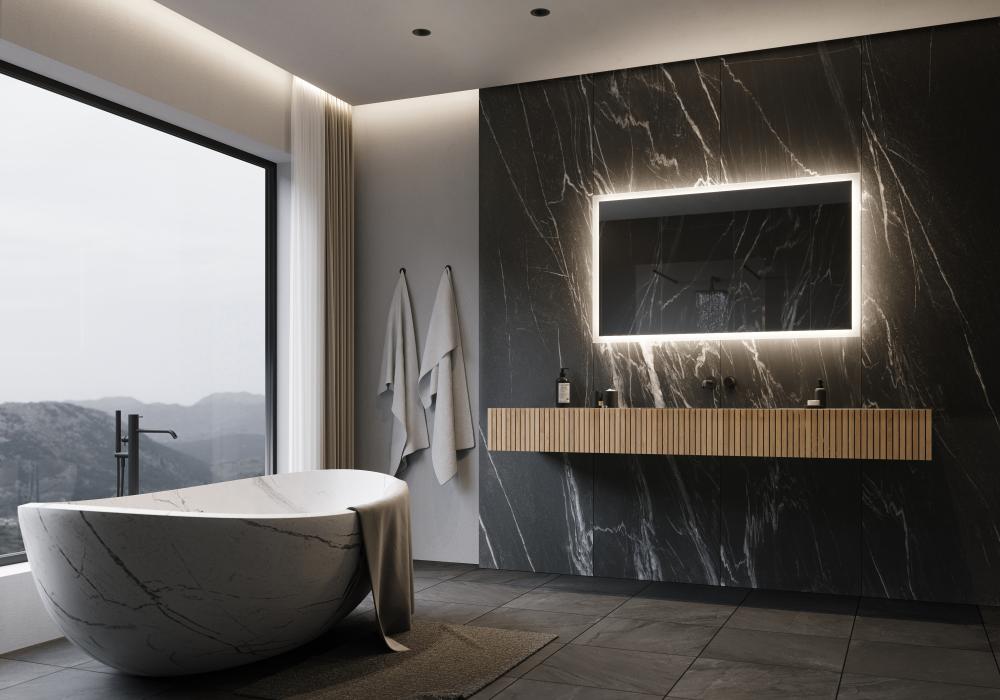 Chic Black Framed Rectangle Mirror (Frontlit)