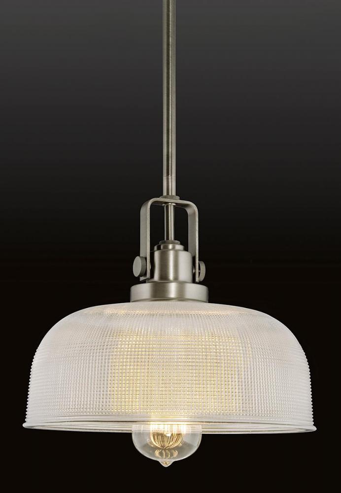 Plated Polished Chrome finish.;Clear double prismatic glass creates a heavenly glow.;Finely crafted strap and knob details.;Includes two 6", one 12", two 15" stems and 6 links of chain.