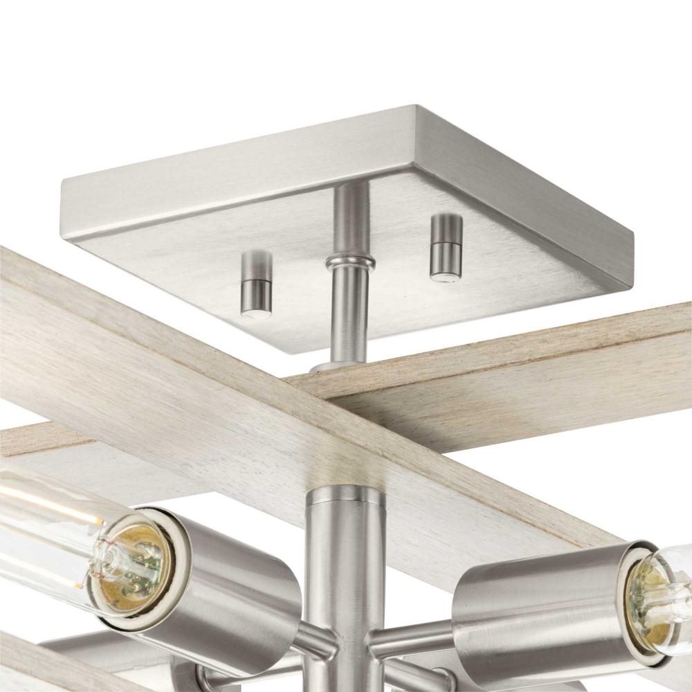 Simple rectangles form the building blocks of the Boundary Flush Mount Light. The fixture's modern organic design is crafted from natural wood and offers warmth and timeless style to contemporary settings.Two rectangles intersect to form an open frame showcasing light sources that deliver clear illumination to the surrounding space. This light is part of the Progress Lighting Design Series, a lighting collection offering fashionable styles and affordable luxury lighting for the home.